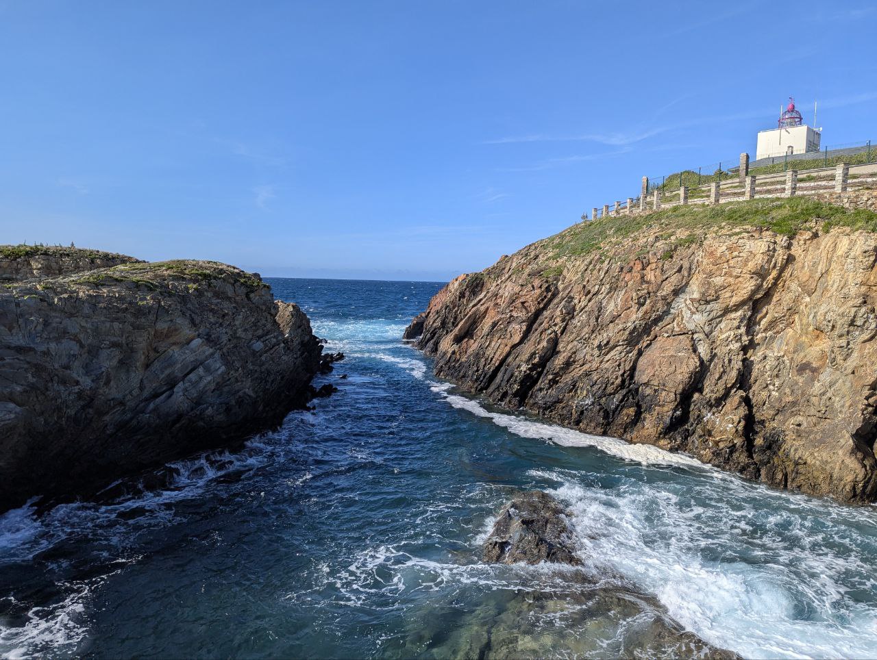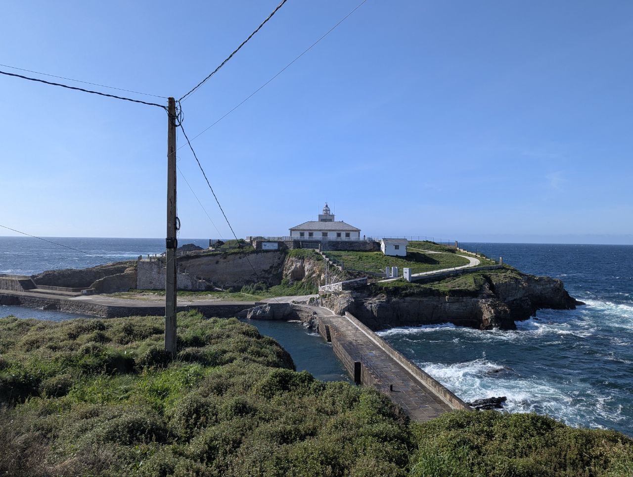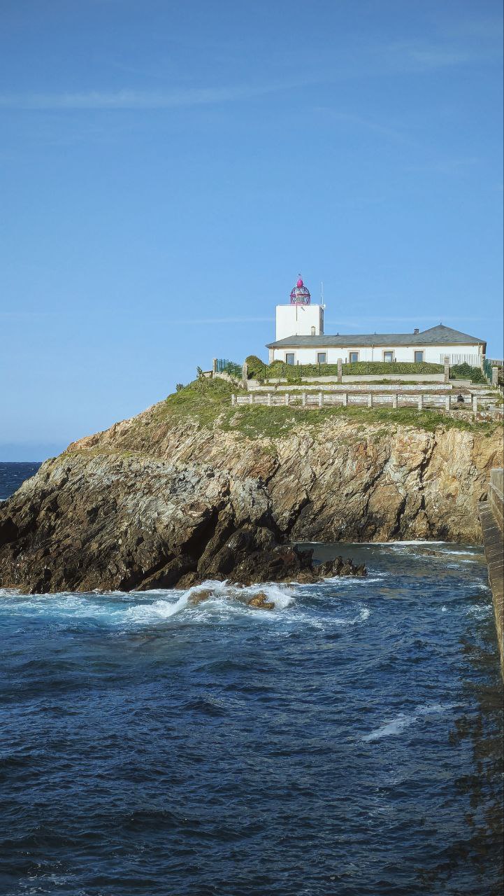 Остров, на котором расположен маяк, невелик — порос мхом, морскими травами и цветами, которые цепляются за расщелины в камне. С него открываются невероятные виды: к востоку — прибрежные деревни с красными крышами, к западу — бескрайняя синь, часто покрытая туманом. Здесь всегда ветрено, и рев прибоя не стихает даже в ясные дни. Faro de Tapia не просто навигационная точка — он ощущается как предел, географический и символический.