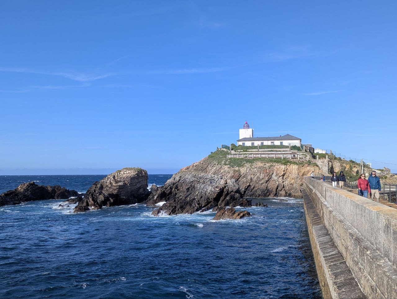 Сюда легко добраться пешком от посёлка Тапия-де-Касарьего. Прогулка к маяку проходит мимо пляжа, по береговой дорожке и далее — по старому волнорезу. В хорошую погоду можно спуститься к воде, а при шторме — просто стоять на смотровой и наблюдать, как волны бьются о скалы у подножия. Весной остров расцветает, летом здесь встречаются чайки и бакланы, а зимой — почти полная тишина, только ветер и море.